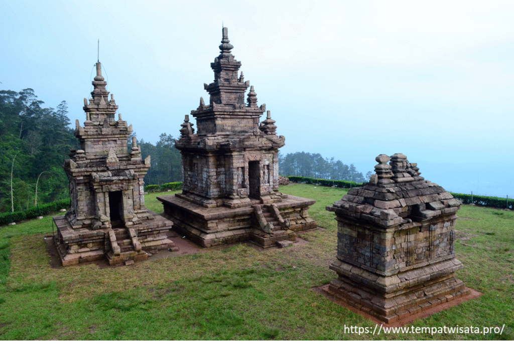 Kompleks candi yang berada di lereng Gunung Ungaran dengan panorama pegunungan hijau.